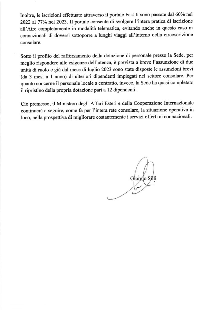 Nell’interrogazione depositata il 28 giugno, la Senatrice La Marca chiedeva il perché dei lunghissimi tempi di attesa di alcuni servizi fondamentali, e spesso essenziali, per la comunità italiana residente a Toronto e che dovrebbero essere erogati dal Consolato Generale.