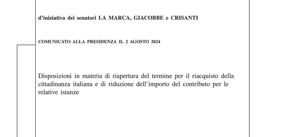 «Dopo un lungo e costante lavoro portato avanti in questi annicon svariati disegni di legge, numerose interrogazioni, interventi diretti con il ministro Tajani, emendamenti e lettere ufficiali, il Governo ha, proprio in questi giorni, presentato un emendamento che riprende i contenuti del mio ddl sul Riacquisto della Cittadinanza per chi l’ha persa(https://www.senato.it/loc/link.asp?tipodoc=sddliter&leg=19&id=58450). È un passo avanti di straordinaria importanza per migliaia di persone nel mondo che, pur avendo perso formalmente la cittadinanza italiana, non hanno mai smesso di sentirsi italiane», prosegue la Sen. La Marca.